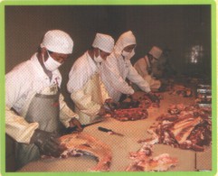 公司直屬優質肉牛育肥場,位于平度市田莊鎮宮東村南1公里處,始建于2009年3月,設計存欄3000頭,現存欄1000余頭,占地100多畝,現有建筑面,18600平方米。公司擁有一批具有養牛經驗的管理、技術、飼養人員。聘請了全國養牛方面的知名專家作為技術顧問。養牛場現有職工23人,具有初、中級以上技術等級和從事養牛5年以上的工人占70%以上,有管理和技術人員5人,其中畜牧獸醫專業中、高級以上職稱3人。本公司通過食品安全認證、質量體系、無公害認證,是國家地理標志保護產品。是肉牛定點屠宰單位。被評為“島城市民最喜愛的農產品品牌”、第一批“平度好食材”。本公司肉牛養殖場喂牛所用飼料全部采用自己配制的飼料,主要使用大豆、玉米、麩皮,大豆經炒料機炒熟后再分碎飼喂,無任何添加劑。公司有火鍋料理店6處,安排從業人員80多人。公司擁有年屠宰加工1萬頭肉牛的屠宰生產線,嚴格執行國家GB/T17238-2008鮮凍牛肉分割標準,并按伊斯蘭清真屠宰要求進行屠宰分割以及排酸嫩化處理。我公司生產的牛柳、西冷、肉眼、上腦、S腹肉等產品主要銷往上海,北京,南京,濟南,青島,煙臺等大中城市的四、五星級酒店,用作西餐、韓餐、日餐、中餐等深受用戶青睞。